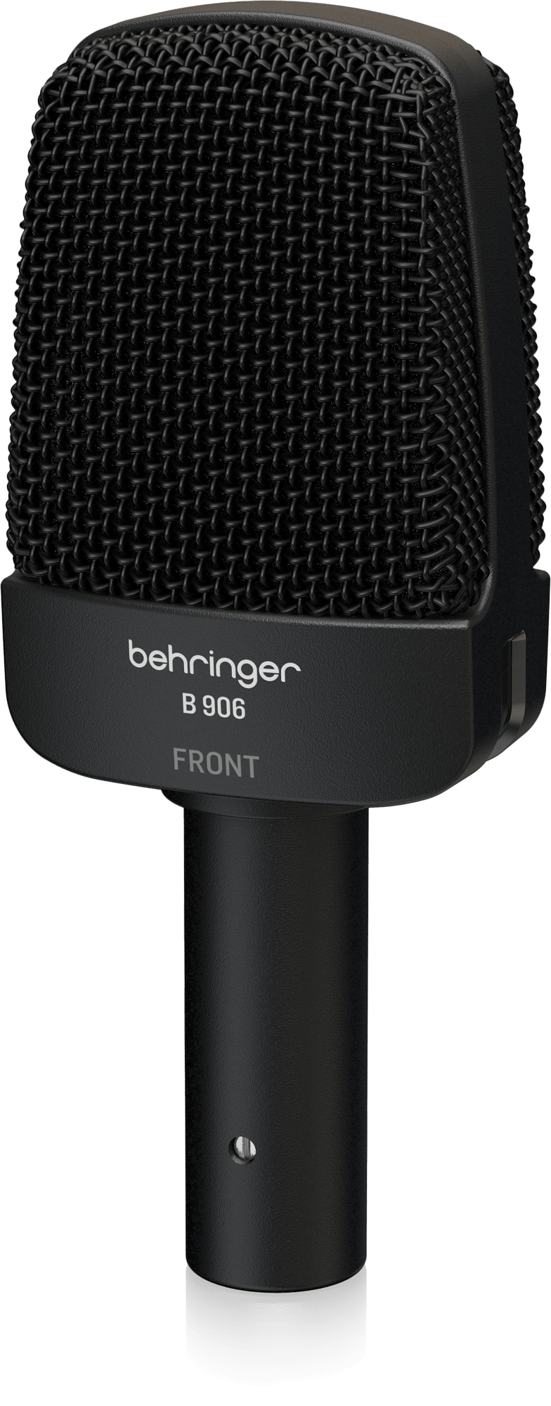 Need a versatile mic to handle drums, percussion, amplifiers and other instrumental sources? Behringer has the answer with the B 906, a super cardioid dynamic mic that’s custom designed for great instrument reproduction! The B 906 instrument microphone is especially tailored for guitar amps, and is also excellent for percussion, horns and vocals.