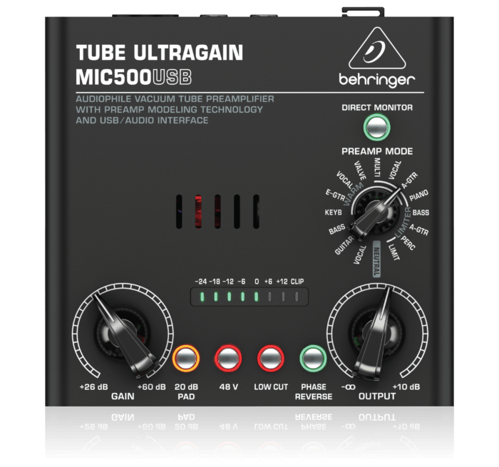 Tubes can really warm up a signal fast, giving it depth and character. Though transistors have succeeded the technology, many musicians agree that tubes deliver a far superior sound. The TUBE ULTRAGAIN MIC500USB’s handselected 12AX7 vacuum tube gives everything from microphones to acoustic or bass guitars that vintage tube vibe – in a dependable and ultra-affordable package.