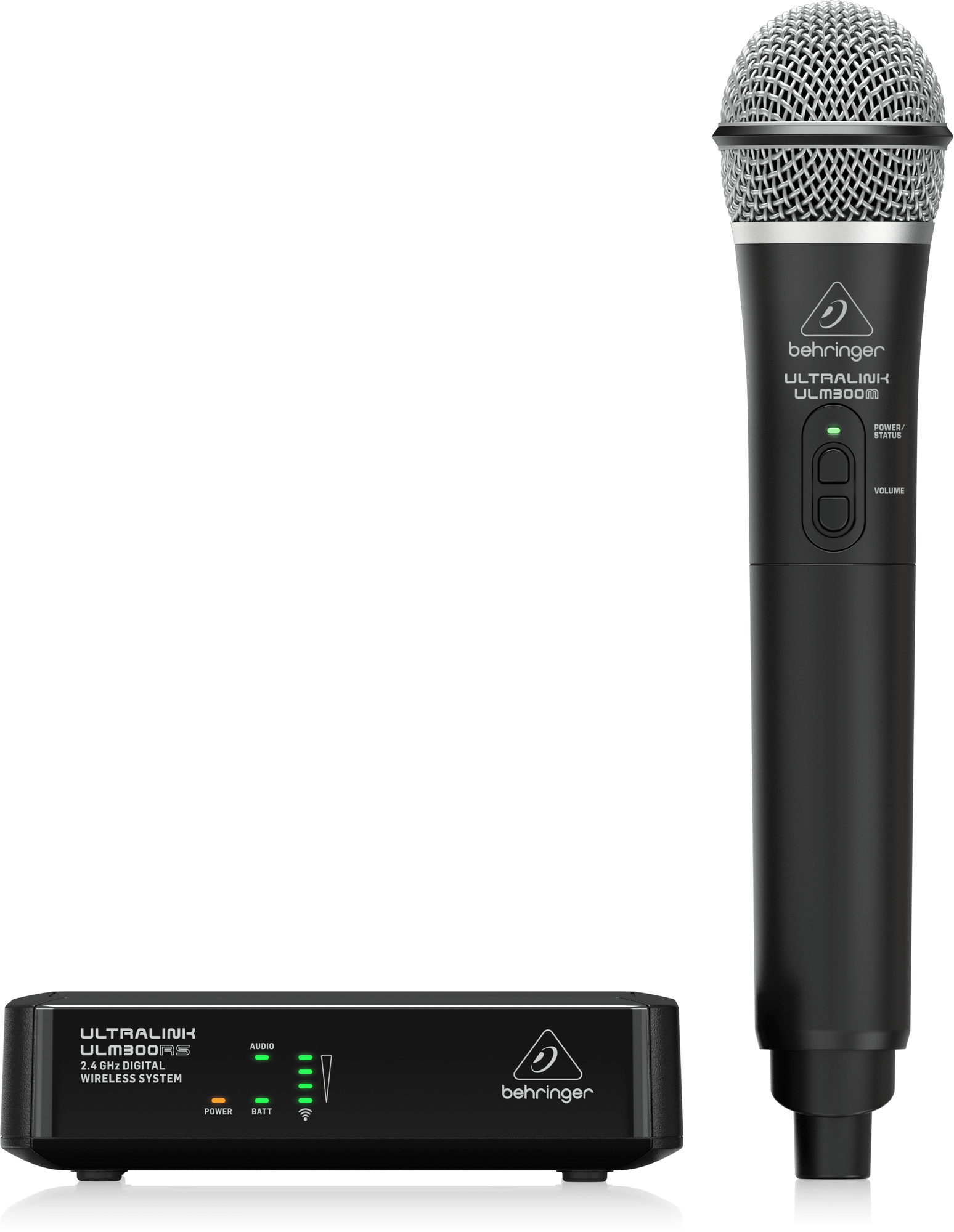 Once again we broke the affordability barrier – with our new ULTRALINK ULM300MIC Wireless Microphone System, which includes 1 of our highquality ULM300M handheld mics – and the equally-impressive ULM300RS single-channel receiver. Now you are free to work the room to your heart’s content, without the hassle and restriction of cables underfoot. Highest-quality sound is provided by the custom-designed microphone capsule that is optimized for vocal performance, and the built-in transmitter that operates in the license-free 2.4 GHz range.