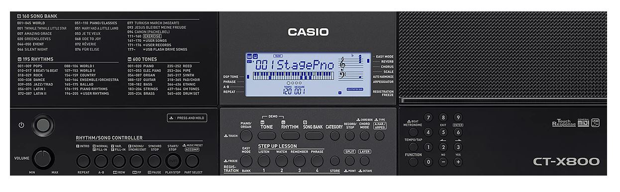 The CT-X Series comes with the AiX Sound Source, which can produce a wide range of sound qualities from powerful bass tones to clear high tones. The exceptional computing power of the high performance LSI reproduces the natural charm of acoustic instrument sounds, such as the agreeable change in tone when a piano key is struck, the sensation of a drum performance, or soaring strings.