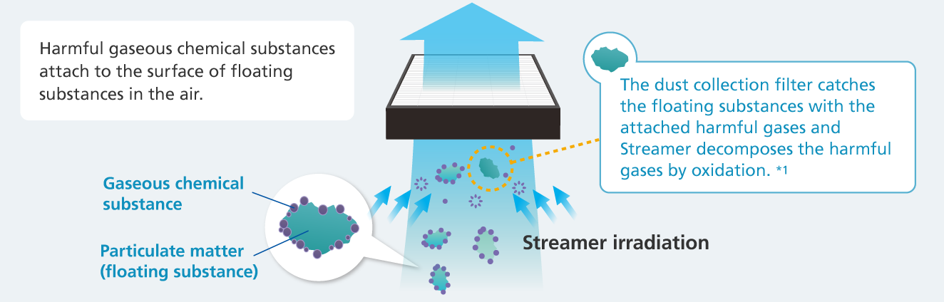 Decomposes harmful substances on the dust collection filter by oxidation!