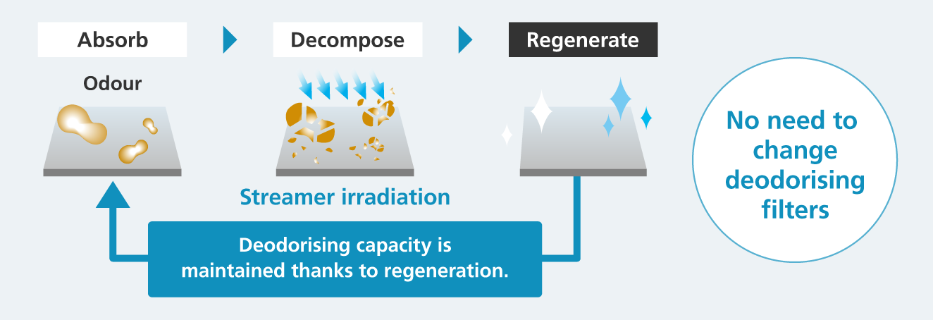 The deodorising capacity is maintained because the adsorbing capacity regenerates.