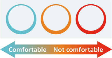 Displays the condition of the air selected by air monitor in 3 colours: blue, orange, and red.
