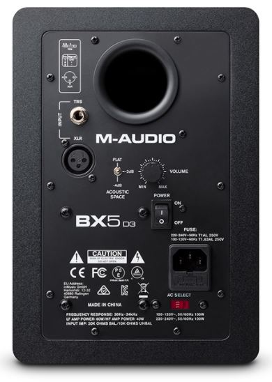 At M-Audio, we understand no two listening spaces are the same. Therefore, the BX5- D3 monitors custom tailors your sound to your environment, so you will always experience sonically-true, reassuringly-accurate sound reproduction. Negate problematic bass frequencies and limit the impact of nuisance standing waves thanks to BX5-D3’s special Acoustic Space control for precise adjustment of BX5-D3’s sound output in line with your studio space.