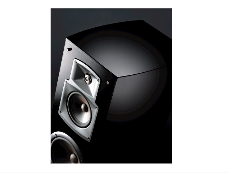 The EF series speakers are enclosed in an elliptical form cabinet with a high gloss black piano finish which provides solid construction with minimal sound diffraction.