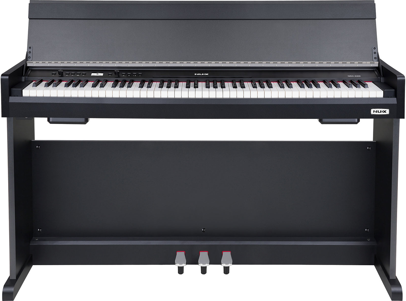 The NCK‐330 features the NUX WKJ‐03 Triple‐Sensor Scaled Hammer‐Action Weighted Keyboard with escapement and synthetic ivory/ebony keytops.