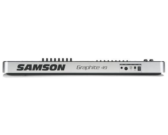 The Samson Graphite® 49 USB MIDI Controller gives you all the performance and production control you need to get the most out of your music software. Combining an intuitive 49-key semi-weighted keyboard with a feature set that is both useful and accessible, the Graphite 49 is a sleek, powerful tool that allows you to express your most dynamic musical ideas.