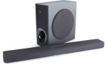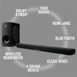 All-in-one immersion. This sleek, single-body Dolby Atmos® sound bar has two subwoofer drivers built in, giving you rich bass without the need for a separate sub. Perfect for smaller living rooms, bedrooms and dens, it delivers surprisingly spacious and clear sound.