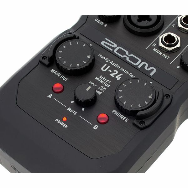 Zoom U-24 Handy Audio Interface is a compact, 2-in/4-out audio interface with 48V phantom power that provides all of the essential tools you need for recording and performing high-resolution, 24-bit/96 kHz audio anywhere you go. It can be used to connect to your Mac or Windows computer, or iPad* via USB, to record with mics, instruments, and more. Zoom U-24 Handy Audio Interface